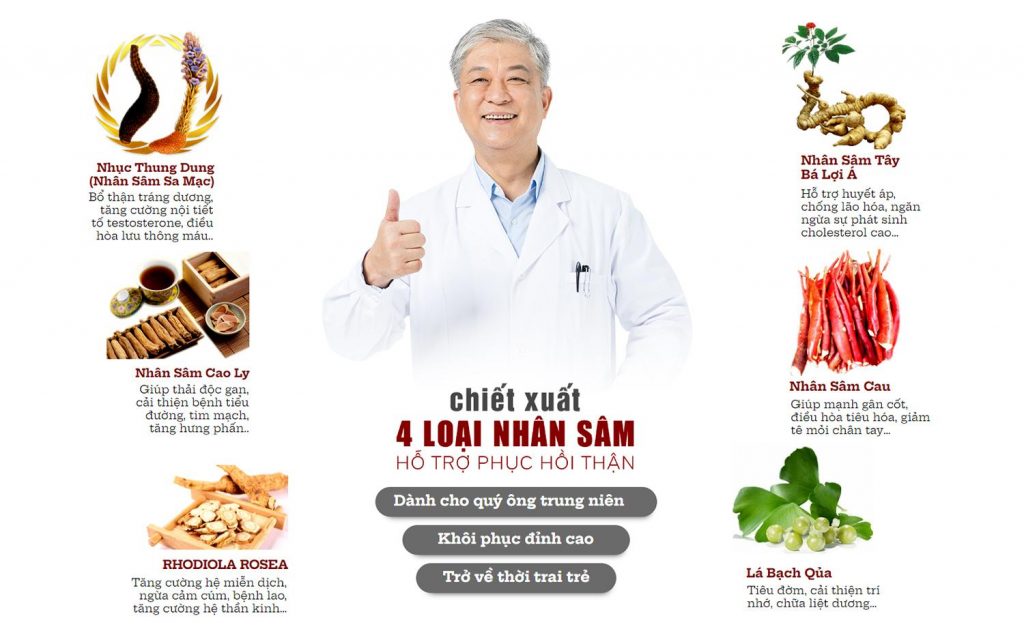 Thuốc bổ thận cho nam Rizin Nhật Bản được chế tạo từ 4 loại nhân sâm nổi tiếng và các dược liệu quý hiếm khác, mỗi thành phần đều đóng góp vào các tác dụng hỗ trợ và bảo vệ sức khỏe thận cho nam giới. Hãy cùng đi vào từng thành phần để tìm hiểu về công dụng của Rizin Nhật Bản đối với thận: